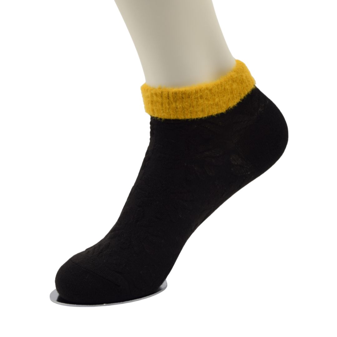 Women’s Black Ankle Socks with Yellow Floral Design & Soft Cuff