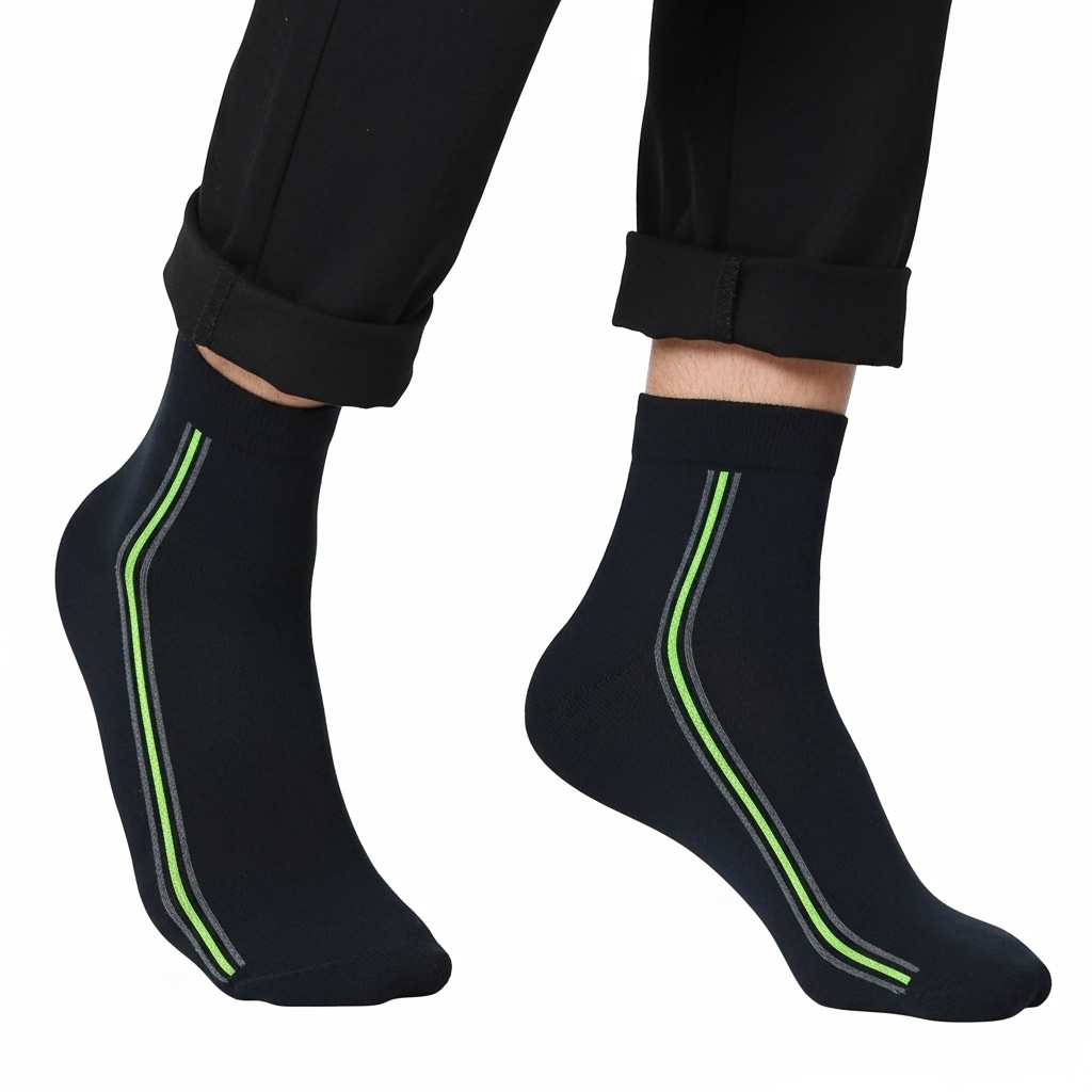 Men’s Black Crew Socks with Green Stripe – Stylish & Comfortable
