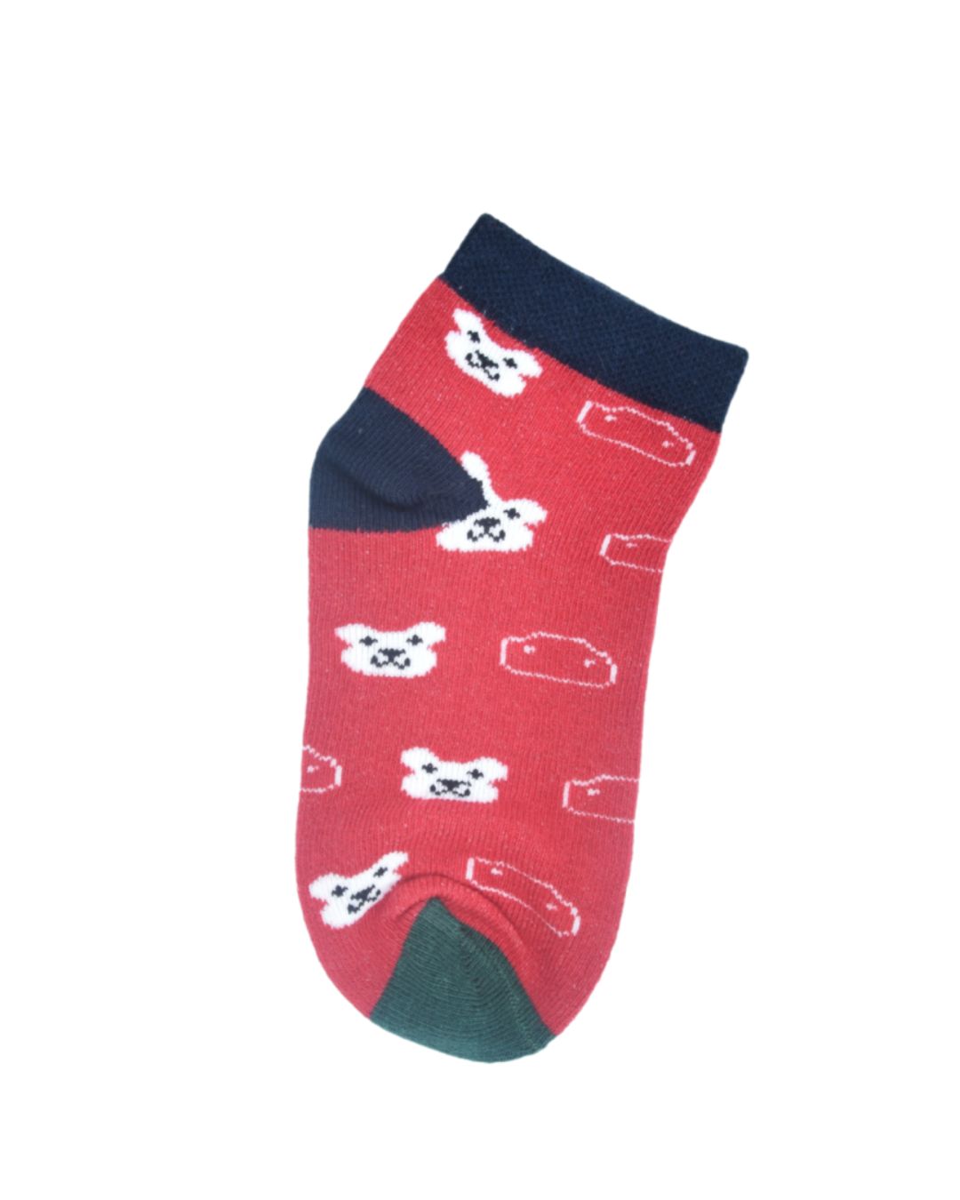 Kids Cute Bear Pattern Ankle Socks – Red | Soft Cotton Comfort