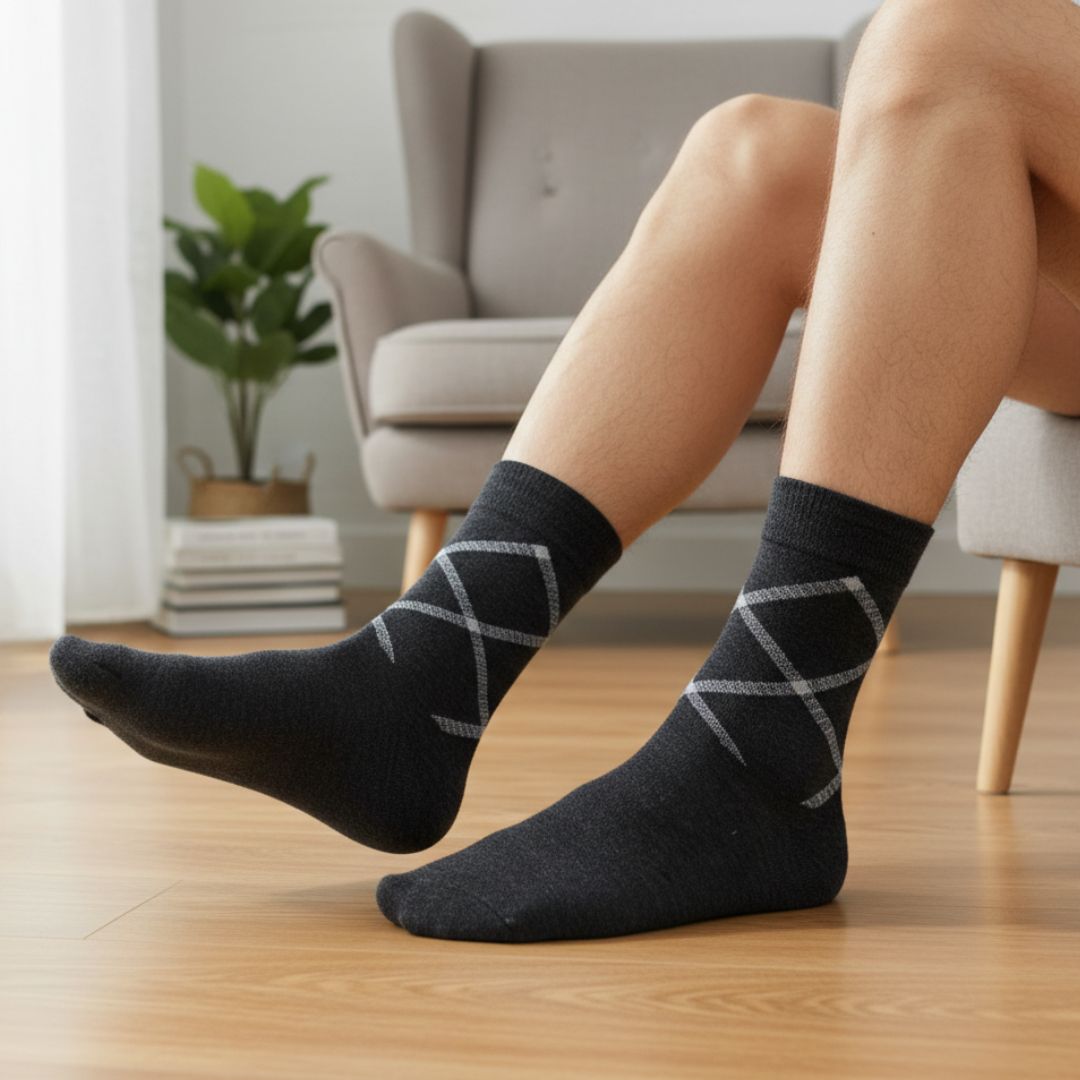 These Black Cotton Ankle-Length Socks are crafted from soft, breathable cotton to keep your feet comfortable throughout the day. Designed for normal and casual wear, they offer a snug yet flexible fit that works well with daily footwear. The subtle line design adds a modern touch while maintaining a clean and versatile look. Lightweight and easy to wear, these socks are ideal for regular use at home, work, or casual outings.