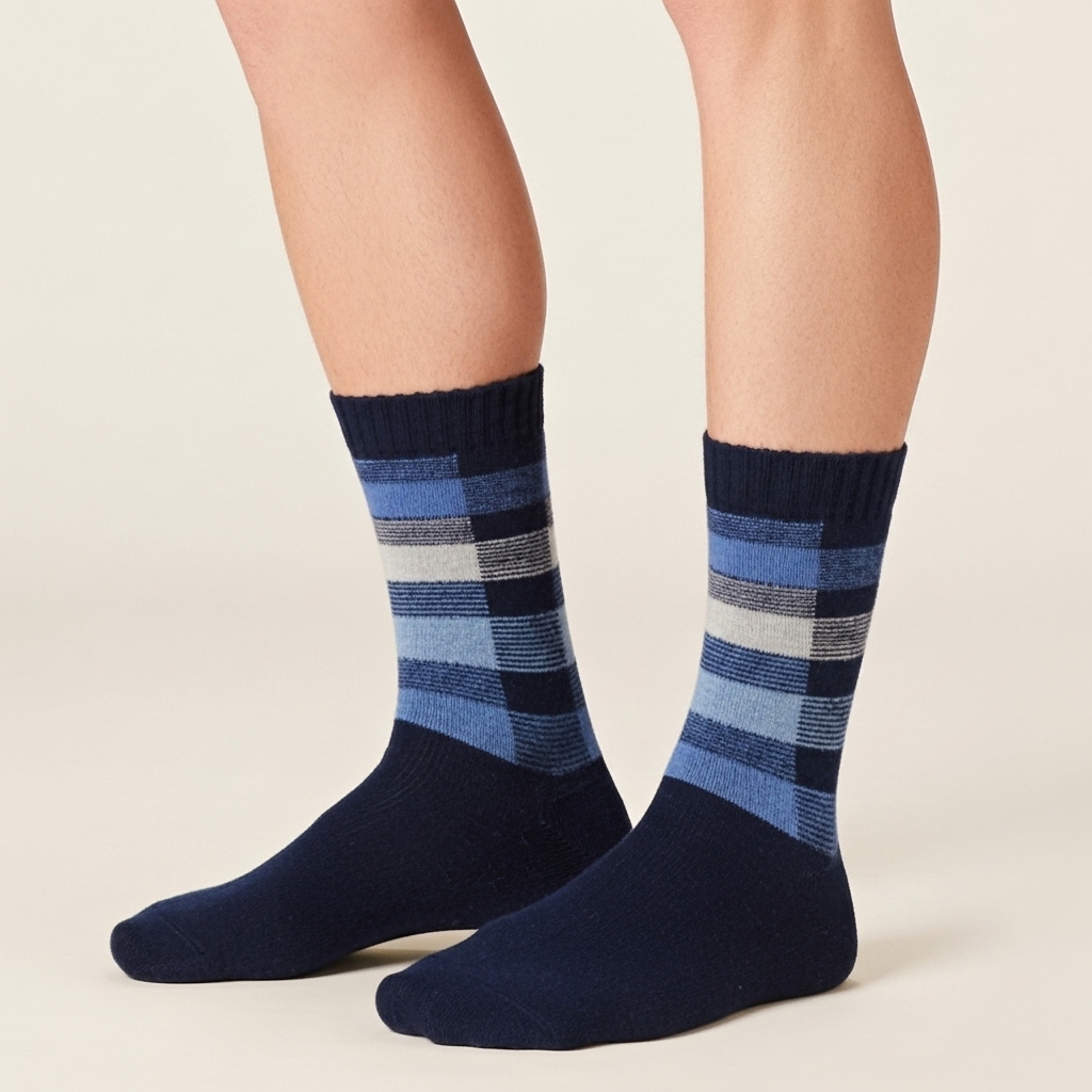 Blue Checkered Woolen Crew Socks – Warmth with Style