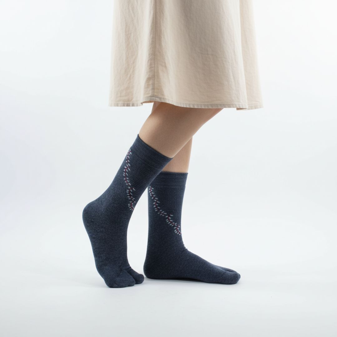 These Charcoal Grey Woolen Thumb-Toe Socks are made from high-quality woolen knit fabric that feels soft against the skin and provides reliable comfort for daily use. The thumb-toe design, with a separate big toe, supports natural foot alignment and easy movement, helping reduce toe friction and enhance overall comfort. Styled in a classic crew-length fit with a gentle, stay-in-place cuff, these socks feature a subtle stitched pattern that adds a modern and minimal touch, making them suitable for home wear, work-from-home routines, or casual outings.