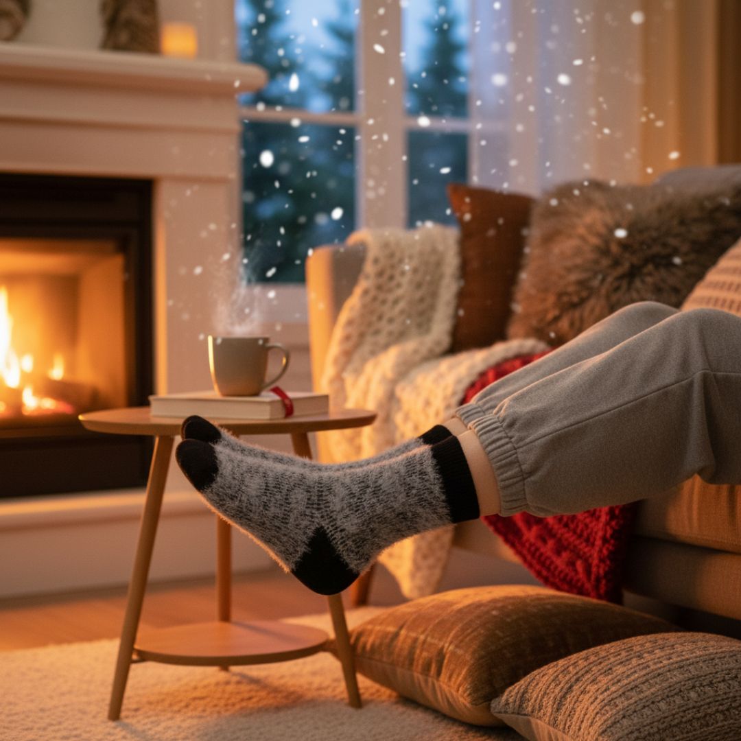 Thermal “Cloud-Touch” Insulation: These socks utilize a heavy-duty, dual-layer design featuring a thick jacquard knit exterior and a full-length, high-pile white sherpa fleece interior for maximum heat retention.