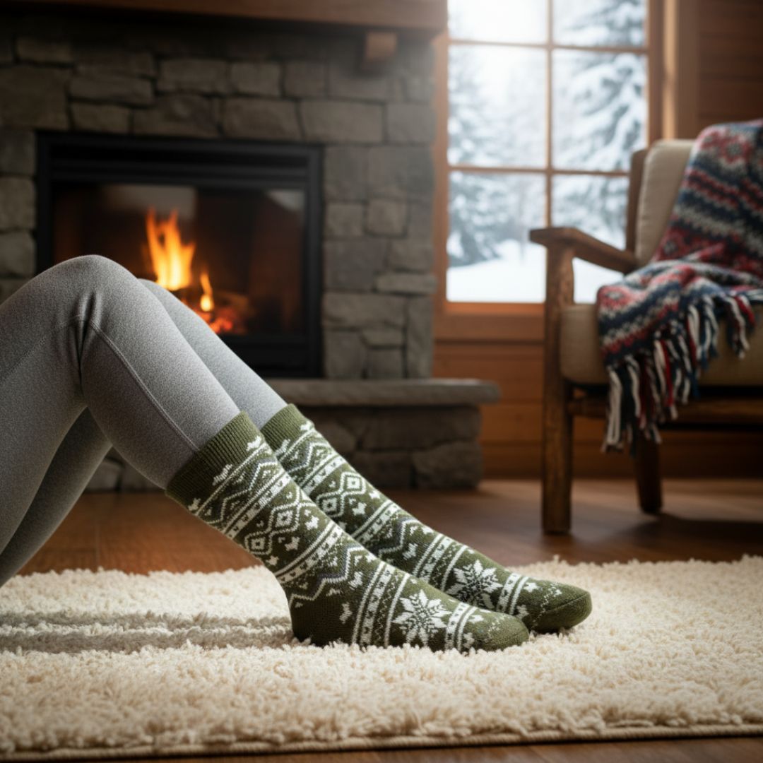 Settle in for the winter with our Cozy Hearth Unisex Thermal Socks. If you are searching for premium, festive unisex thermal socks, this olive green pair provides the perfect blend of warmth and traditional style. Crafted with a heavy-gauge knit, these thermal socks offer reliable insulation and luxurious softness, making cold winter days instantly cozier.