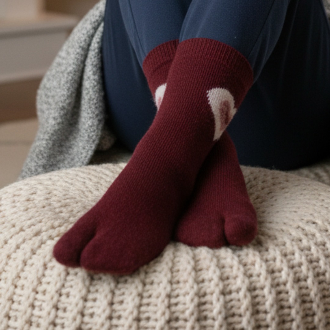 These Maroon Woolen Thumb Socks are made from high-quality woolen fabric that feels soft on the skin and provides excellent comfort for daily wear. The thumb (separate toe) design allows natural toe movement, better balance, and reduced friction compared to regular socks.