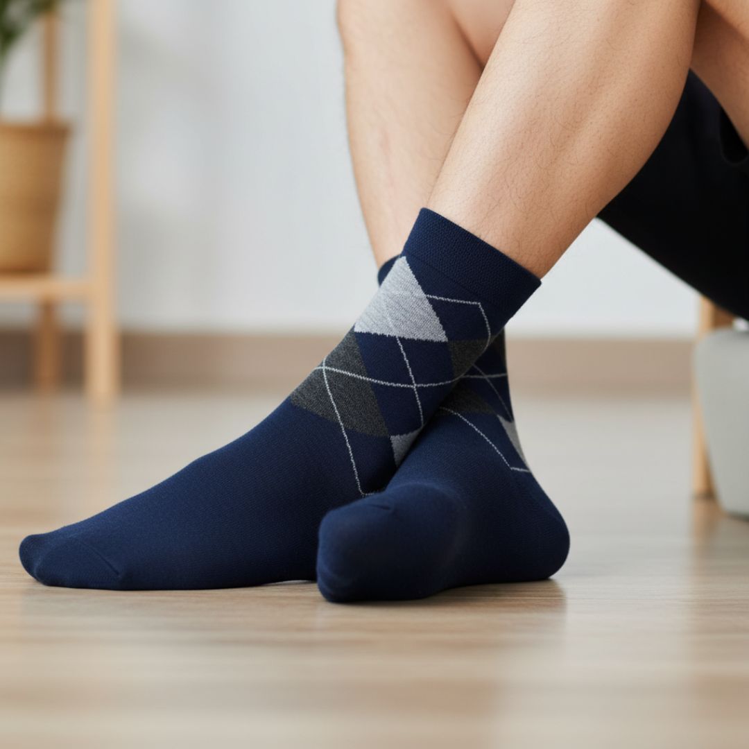 Comfortable cotton ankle-length socks with a classic argyle design, ideal for everyday casual use.