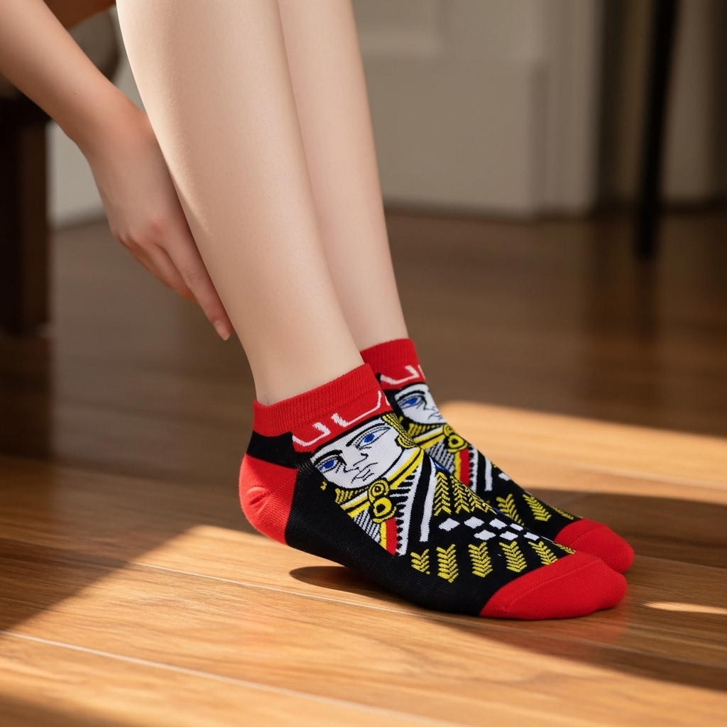 Bring fun and fashion together with these Playing Card King Design Ankle Socks. Perfect for sneaker lovers and style enthusiasts, these socks are crafted to provide comfort while making a statement.
