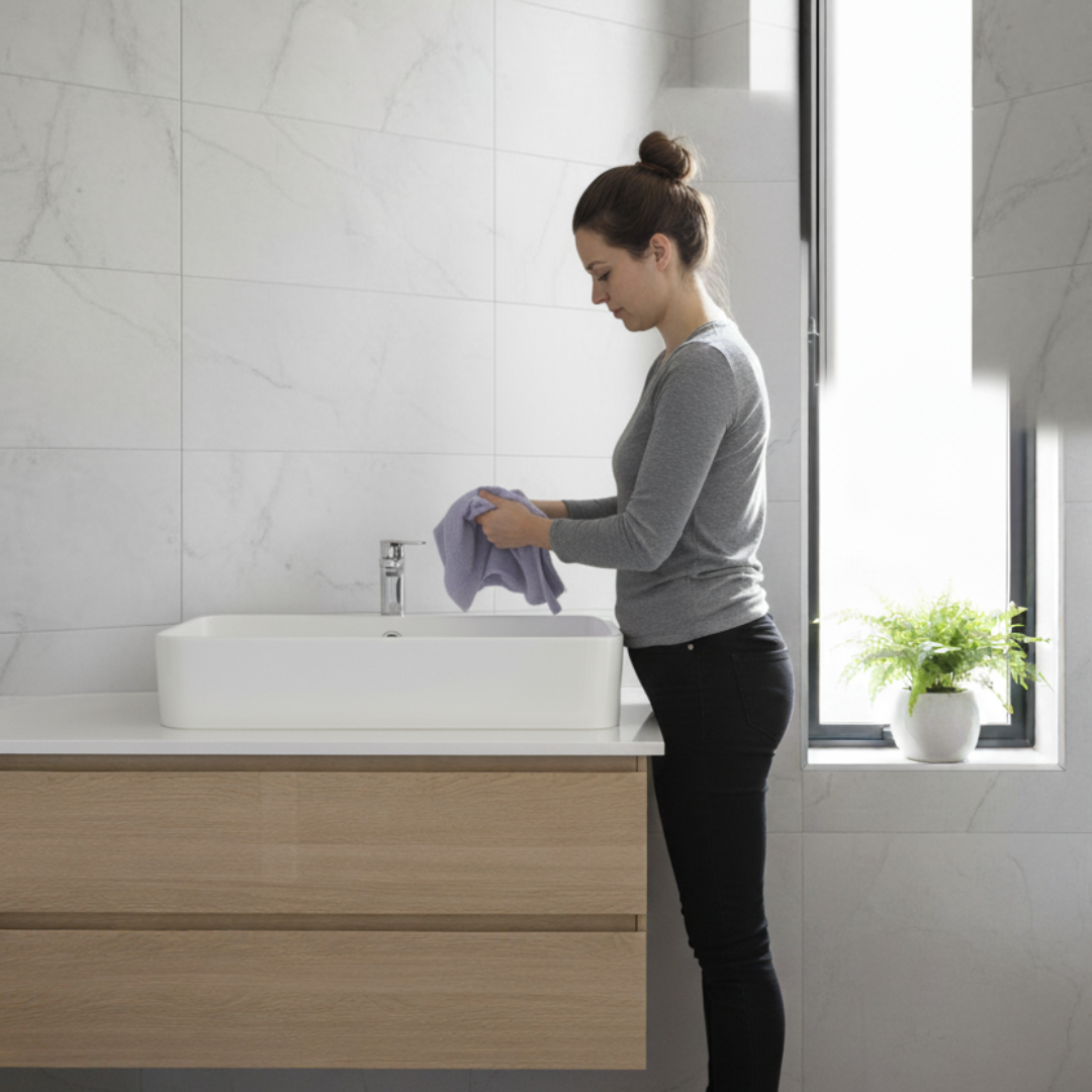 - Turbo-Absorbency: The raised vertical ribs dramatically increase the surface area and create micro-channels that guide water away from the skin, achieving an instantaneous and complete moisture absorption that far surpasses standard flat terry cloth.