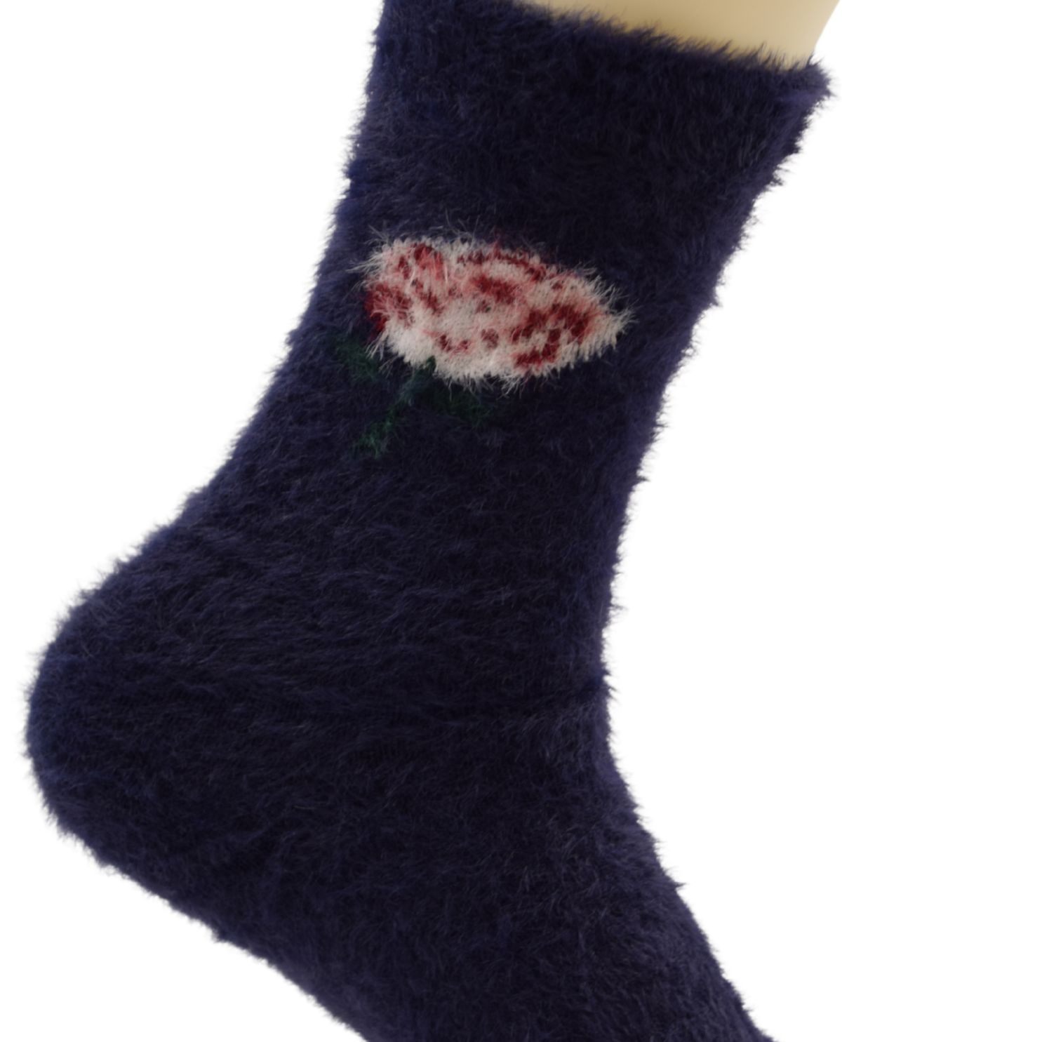 Wrap your feet in warmth and comfort with these women’s fuzzy winter socks in elegant navy blue, accented with a charming floral design. Crafted from plush, ultra-soft fabric, these socks feel luxuriously cozy, making them ideal for lounging at home, wearing with sleepwear, or keeping warm on cold winter days.